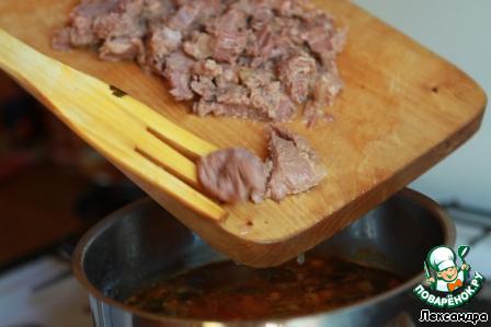 • Говядину нарезаем маленькими кусочками