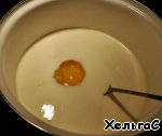 Затем добавим молоко, сливки, яйцо и специи, все перемешаем.