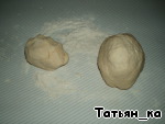 Замесить тесто так, чтобы оно отлипло от рук. Разделить тесто на две неравные части (большую - для основы пирога, меньшую - для «крышки» пирога). Летом я ставлю тесто на 15-20 минут в холодильник, тогда с ним проще работать).