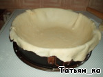 Смазываем разъемную форму сливочным маслом или маргарином. Большую часть теста раскатать и выложить в форму так, чтобы получились закрытые бортики.