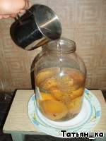 По истечении данного времени слить еще раз и добавить сахар. Я в персик (даже если он зеленоватый) добавляю 0,5 стакана на трёхлитровую банку,