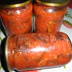 Я готовлю из 1 кг баклажан - всe остальное по пропорции. Получается 4 баночек по 0, 5 л, если вся порция - то 10 баночек.