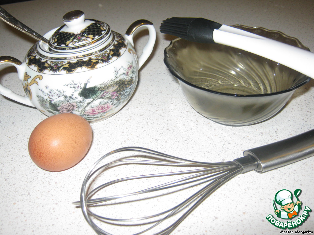 • Взбить яйцо, 1 ст. л. молока, 1 ч.л. сахара