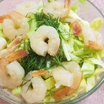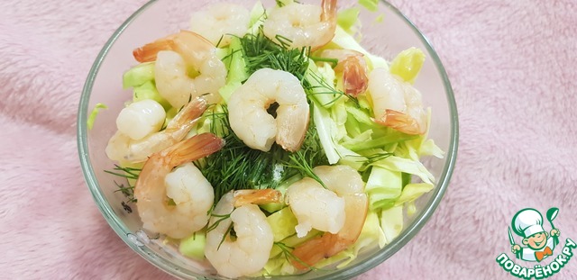 Креветки опустить в горячую воду на 1 мин, воду слить, креветки обсушить.