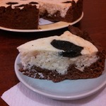 Пирог отличный. Шоколадная корочка, нежная начинка. Прекрасно выпекся, застыл, семейство счастливо.