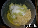 Смешиваем бананы и кабачок, добавляем яйцо и сахар, перемешиваем.