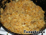 Когда лук подрумянится, добавить натертую на крупной терке или нарезанную соломкой морковь и, постоянно помешивая, продолжать жарить.