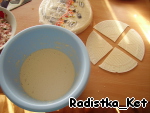 Готовим тесто: смешиваем все ингредиенты (молоко 100 мл, яйцо, 50-60г муки и соль).