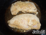 На сковороду наливаем масло и ставим на огонь. Каждое филе сначала обволакиваем в яйцах, а потом в сухарях. Затем повторяем все то же еще разочек. И теперь обжариваем по паре минут с обеих сторон.