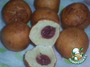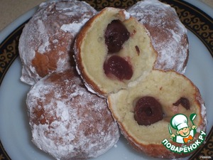 Отрываем по кусочку, скатываем в шарик и приплюснуть, кладeм начинку - вишни, защипать и жарить во фритюре на медленом огне до золотистого цвета, если масла достаточно, то они сами будут переворачиваться, если нет, так помочь.