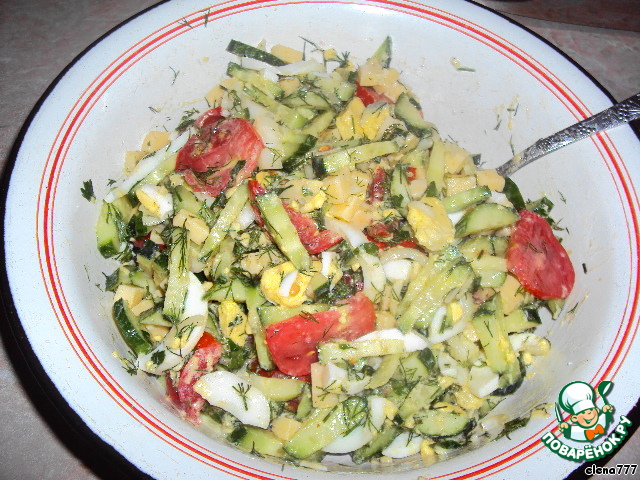 Удивительный летний салат с пикантным соусом и зеленью. Готовится легко и просто, съедается быстро и повышает настроение!