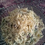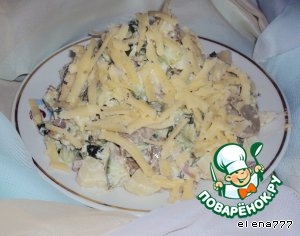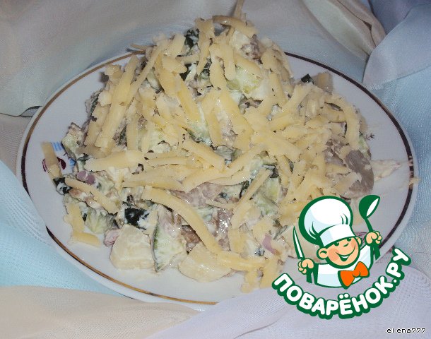 Салат выложить горкой на блюдо и перед подачей посыпать тёртым сыром.