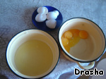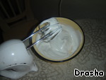 Пока тесто в духовке, взбиваем 4 белка со стаканом сахара в густую пену.
