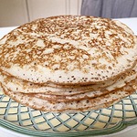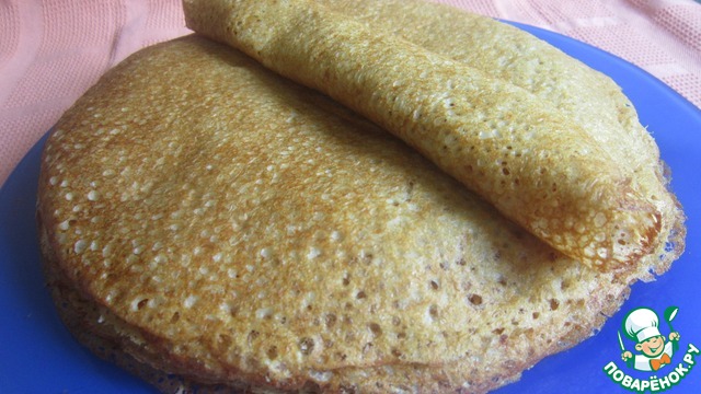 Делала полпорции, но с целым яйцом. Мягкие, дырчатые, прекрасно переворачиваются и снимаются.