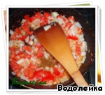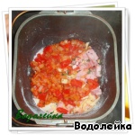 Первым делом обжарить измельчённые лук и помидор. Немного - минут 5. И дать остыть.