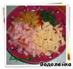 - Колбаса (у меня ветчинная, примерно) — 50 г