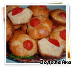 Этот рецепт увидела на просторах нета. Такие булочки можно кушать вместо хлеба с любыми первыми блюдами. Да и сами по себе они тоже вкусненькие. А за счeт помидора, который находится как бы в домике, они ещe и выглядят красиво.
