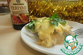 Эту массу заполняем между баклажанами (веер), сверху обсыпаем голландским сыром (через терку) и в духовку на 5-10 мин.