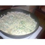 Отварную грудку промолоть через мясорубку, положить к овощам, хорошо обжарить, положить 2 помидора (очистить от кожуры). Добавить 1 десертную ложку томатной пасты и влить чуть-чуть бульона, соль, перец по вкусу. -