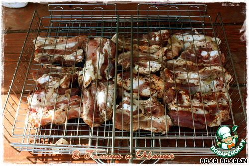 Мясо, свининку, мариновали традиционно. С луком и специями. Безо всяких уксусов, вин и прочих соусов.