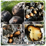Стоп! Не надо говорить, что обуглилась, сгорела…. Кто «родом из у бабушкисдедушкиным лета», тот меня поймет. Помните эту печеную картошку, которую разламывали и, чуть присолив (сольца из спичечного коробка…), выедали извнутри. И мордахи становились угольно-чумазые. Помните? Вот где кайф-то был…. А если ещё и с лучком зеленым…, то ваще – праздник живота.