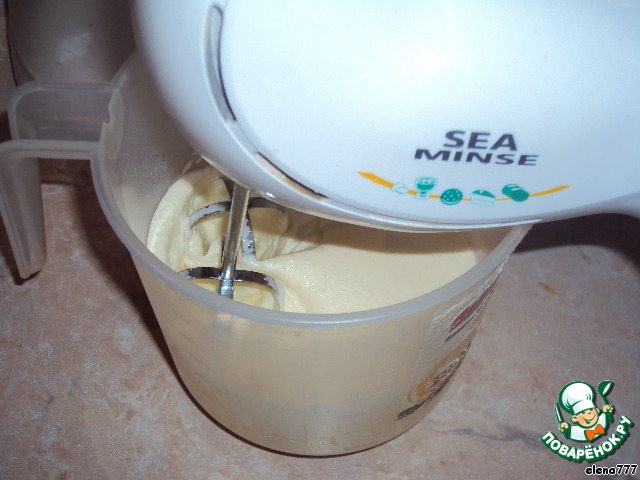 Добавить муку, смешанную с разрыхлителем, и замесить мягкое тесто.