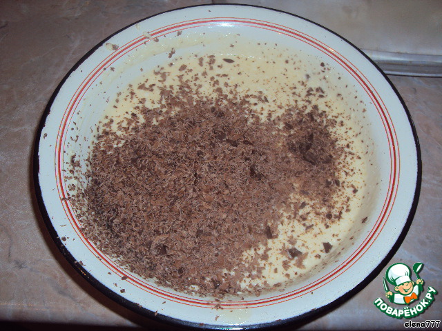 В творог добавить растопленный маргарин, взбитую массу, тёртый шоколад и хорошо перемешать.