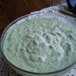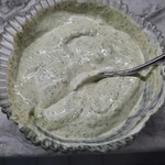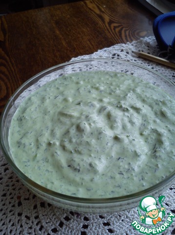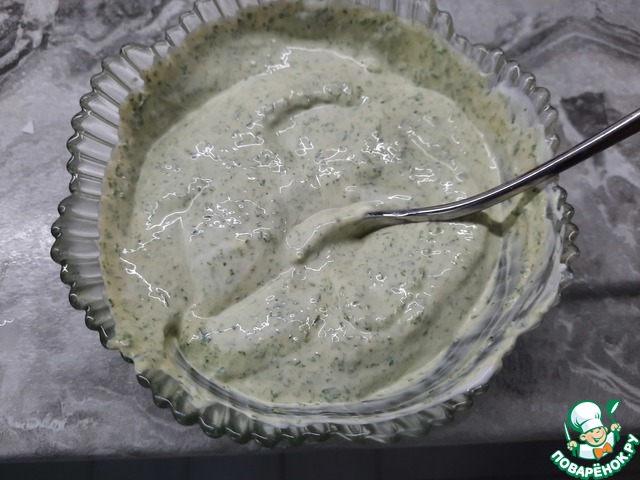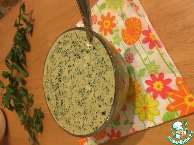 Полученную смесь трав соединить со сметаной. Получится соус красивого изумрудного цвета.
