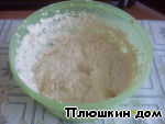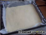 6. Пекарскую бумагу промасливаем, выстилаем на противень, выливаем тесто и печем при t=200 град. 20 мин.