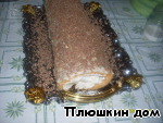 14. верх и бока рулета покрываем заварным кремом и украшаем тертым шоколадом или на что фантазии хватит)) и ставим на пару часов в холодильник