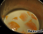 Поставим тыкву варить в молоке с коричневым сахаром 15 минут на маленьком огне.
