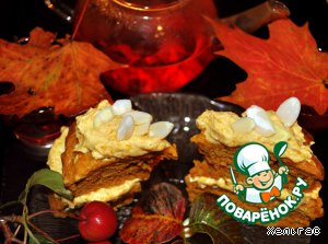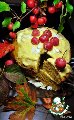 Кекс осенний с яблоками, морковью и тыквенной кремовой прослойкой. Что такое осень: это краски яркие и завораживающие. А так же аромат и вкус зрелых плодов. Выпечка с плодами осени несет отголоски теплоты лета. Предлагаю свой вариант кекса осеннего. Цвет кекса нежно желтый с оттенками красного, оранжевого и коричневого. Настоящие цвета осени. Угощайтесь!