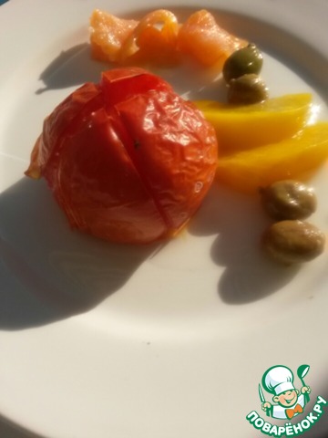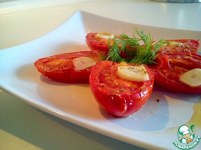 Отправляем помидоры в духовку t180* на 30 минут. После духовку выключить и дать помидорам остыть.
