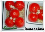 Теперь берем и поливаем каждый помидорчик хорошо соусом. -