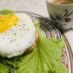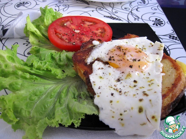 Выкладываем бутерброд на тарелку, а сверху - жареное яйцо. |