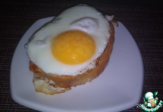 Выкладываем бутерброд на тарелку, а сверху - жареное яйцо.