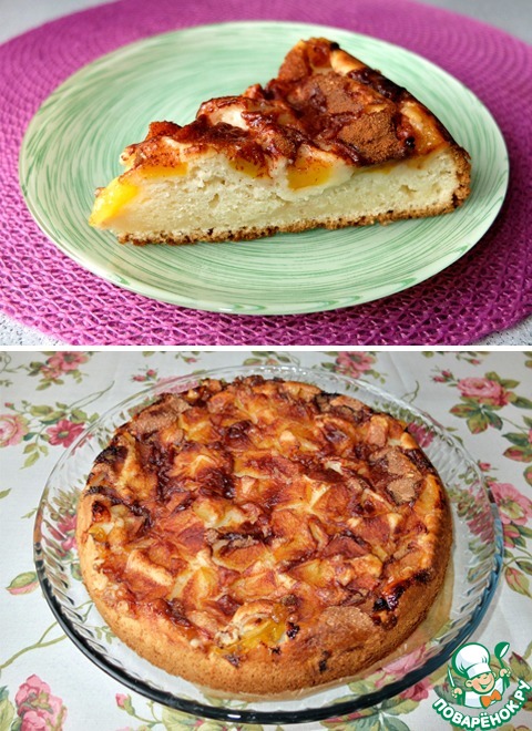 Отправляем содержимое в разогретую духовку, выставляем температуру на "5-ку" и ждем, пока пирог не подрумянется. Все, - десерт готов. Осталось лишь вынуть из духовки, остудить и слямзать!