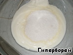 Взбить сахар со сметаной до полного растворения сахара. Добавить погашенную соду. Постепенно добавляя муку, продолжать взбивать. Учтите, тесто не должно быть крутым.