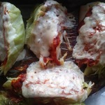Достать ломти капусты из кастрюли, дать стечь воде. На противень положить фольгу, смазать растительным маслом и уложить наши ломти капусты. Капусту обмазать любым соусом. Идеально будет, если соус будет домашнего приготовления (Аджика). Старайтесь промазать соусом и между листьями. Отправить в разогретую духовку на 20-30 мин.