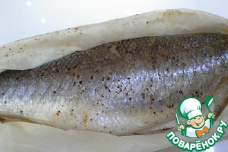 Разделываем рыбу на филе и нарезаем. Посыпаем сверху солью, черным перцем и имбирем (по вкусу).