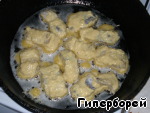 Окунаем подготовленные кусочки рыбы в массу, хорошенько обмакиваем и отправляем на разогретую с маслом сковороду.
