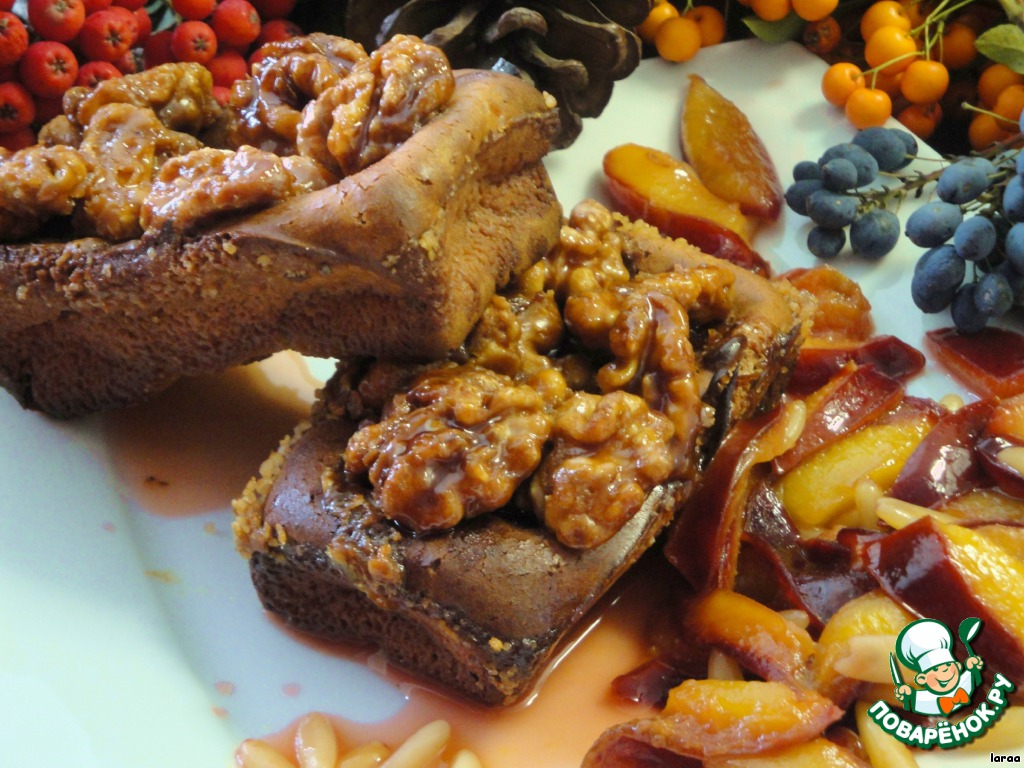 Кексы с карамелизированными грецкими орехами и теплым сливовым салатом