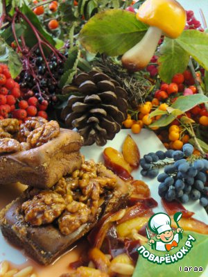 Рецепт «Кексы с карамелизированными грецкими орехами и теплым сливовым салатом»: