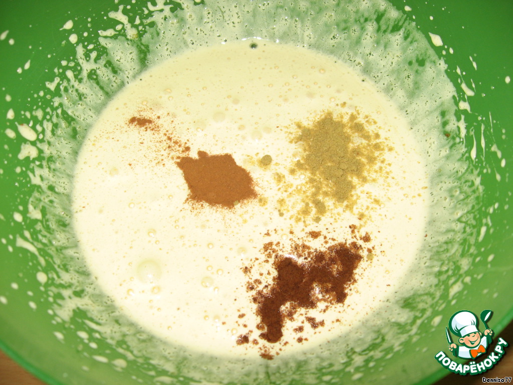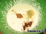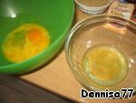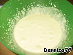 Желтки растереть с сахаром добела, пока не растворится сахар.
