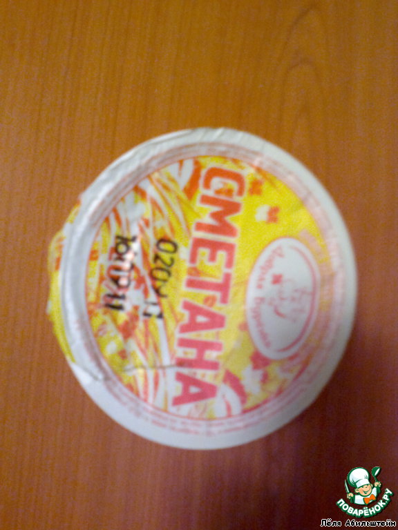 Тем временем делаем для нашей запеканки заливочку. Берем сметанку...