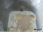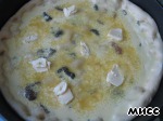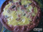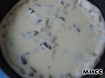 Далее делаем заливку из сметаны и яйца, взбиваем миксером.
