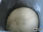 Если у вас нет этого агрегата, то поступайте следующим образом. Просейте муку, добавьте соль. Разведите дрожжи в 1/4 стакана молока, добавьте сахар, дайте подняться пене и влейте в муку. Добавьте оставшееся молоко, яйца и под конец растопленное сливочное масло. Замесите мягкое, эластичное тесто. Накройте и дайте подойти в теплом месте до увеличения в объеме в 2 раза. Обомните тесто и дайте ему ещё раз подняться.