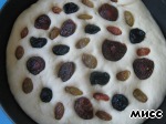 Равномерно распределите ягоды по тесту. Вы спросите: "Почему осенью, при таком изобилии ягод и фруктов, я использую сухофрукты?" Отвечаю. Я живу на Дальнем Востоке, эти фрукты и ягоды не произрастают у нас, а те, что есть, - все привозные и не лучшего качества. Вы, конечно, можете использовать свежие, но помните, что ягоды и фрукты будут отдавать свою влагу тесту, и его структура, пористость изменится.