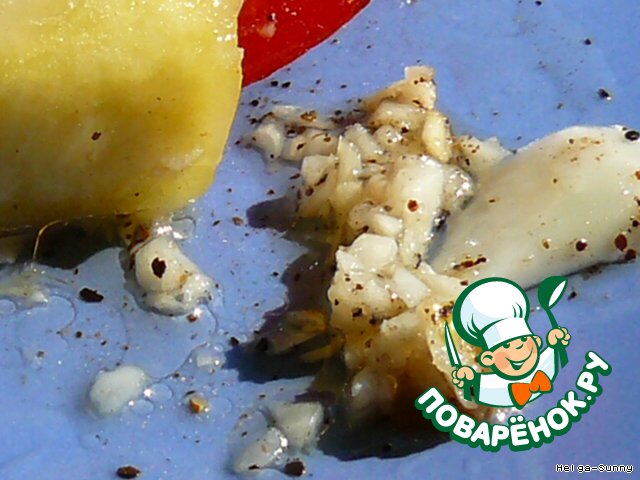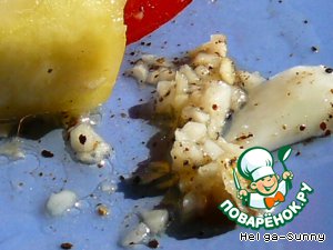 Чеснок очистить и измельчить в блендере, но не очень мелко, не в пюре.