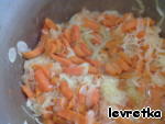 Теперь время закладки овощей. Овощи закладываем в определенной последовательности. Первой у нас идет морковь. Помешивая, пассеруем её на огне 10 минут.
